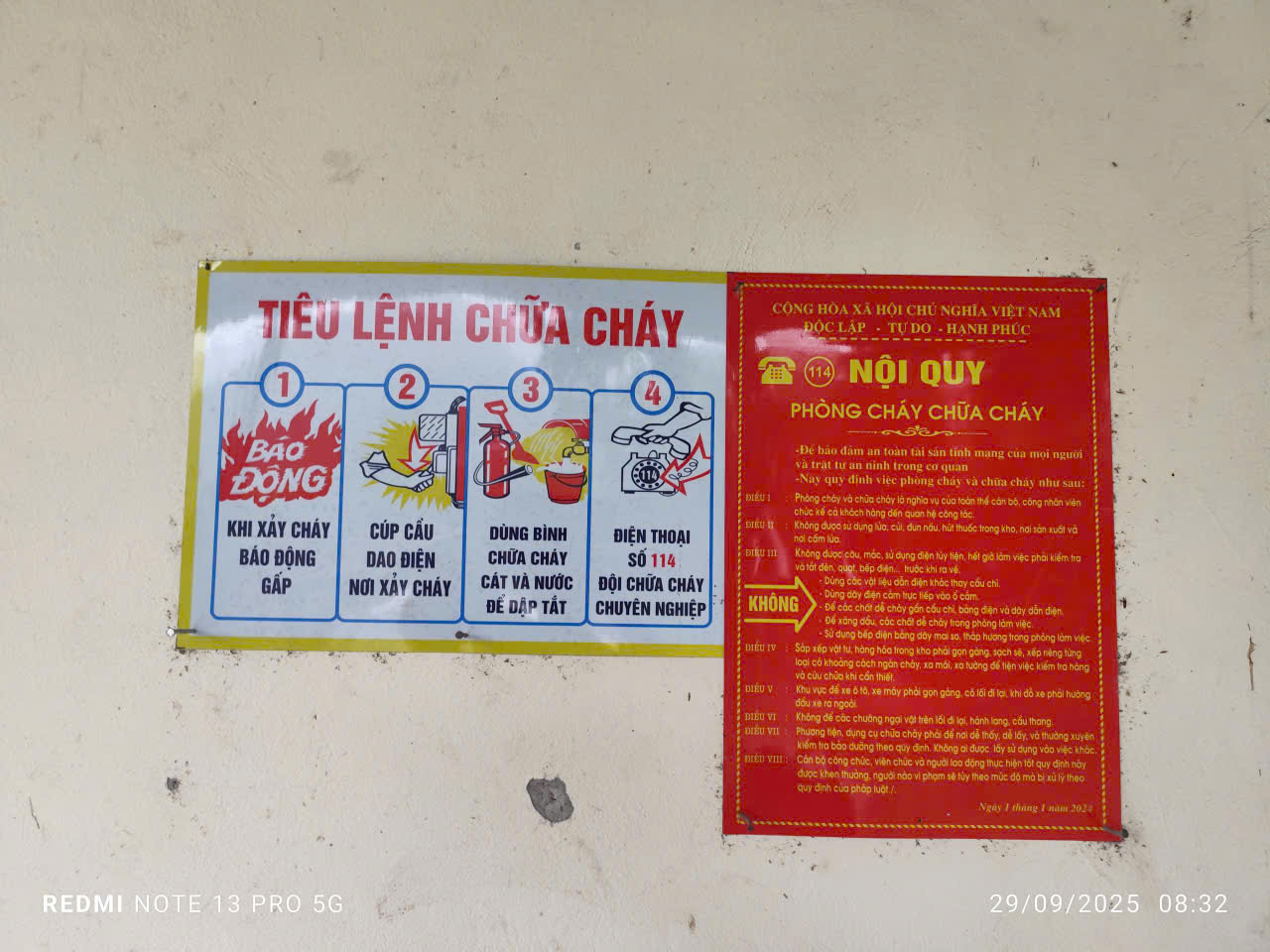 Ngay từ giữa tháng 9, đơn vị đã treo băng rôn, khẩu hiệu tuyên truyền tại trụ sở làm việc, góp phần lan tỏa thông điệp: “Thực hiện tốt Luật Phòng cháy, chữa cháy và cứu nạn, cứu hộ là trách nhiệm và nghĩa vụ của mỗi công dân”. Đồng thời, Ban quản lý cũng niêm yết nội quy, tiêu lệnh chữa cháy, bố trí phương tiện, trang thiết bị chữa cháy tại các vị trí dễ quan sát, thuận tiện cho việc sử dụng khi có sự cố xảy ra.