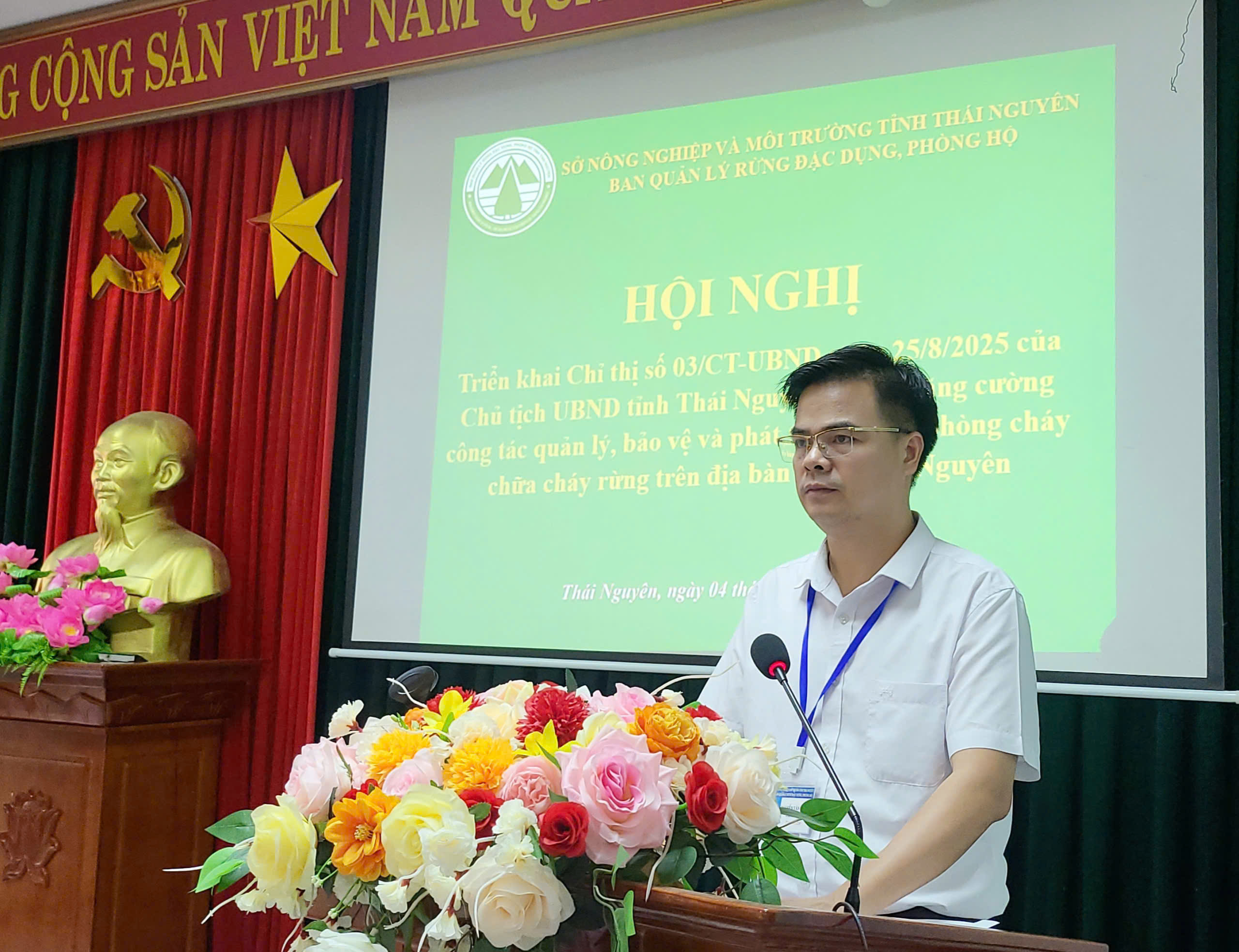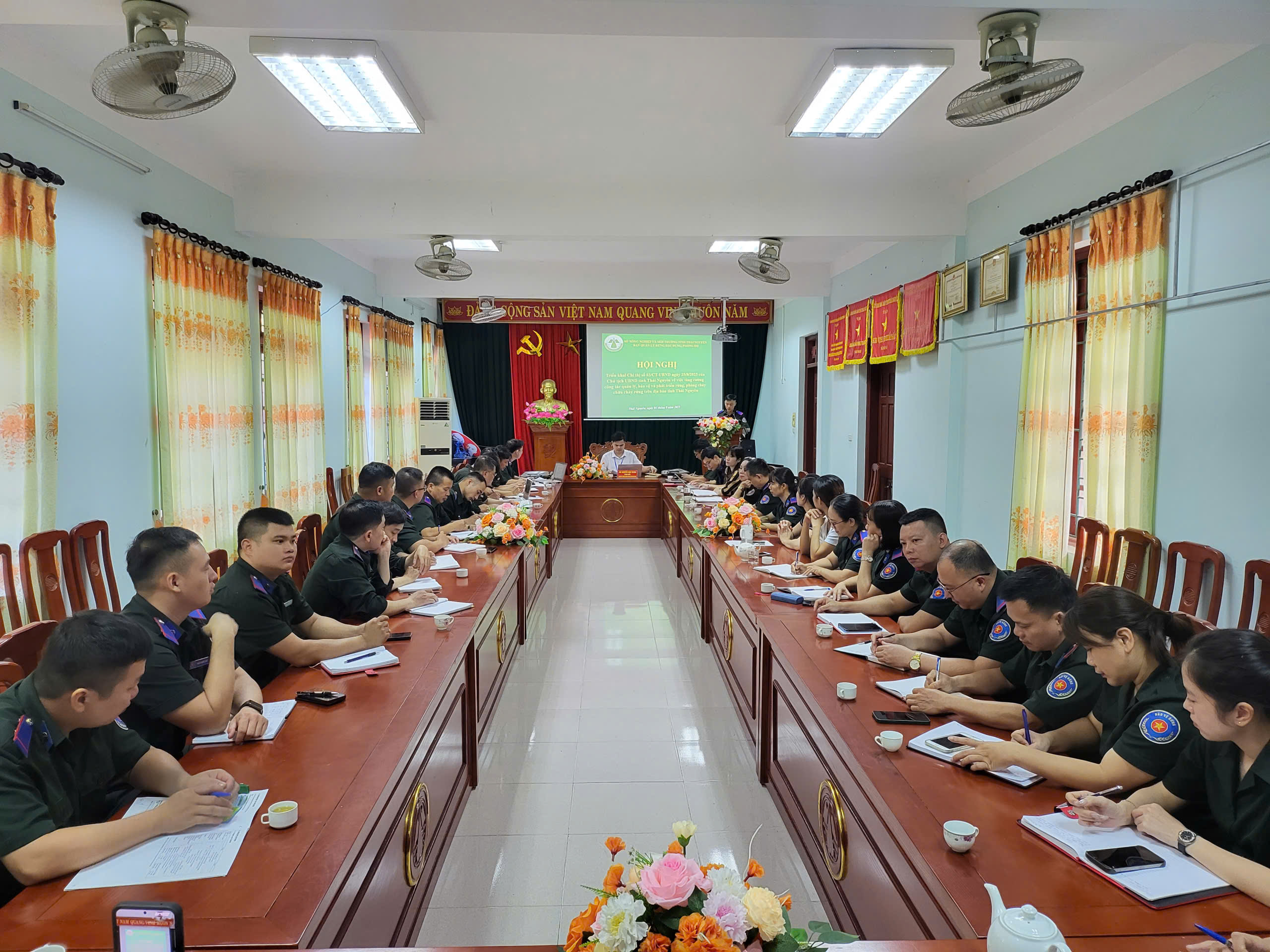 Ngày 04/9/2025, Ban quản lý rừng đặc dụng, phòng hộ tỉnh Thái Nguyên tổ chức Hội nghị triển khai thực hiện Chỉ thị số 03/CT-UBND ngày 25/8/2025 của Chủ tịch UBND tỉnh Thái Nguyên về việc tăng cường công tác quản lý, bảo vệ và phát triển rừng, phòng cháy chữa cháy rừng trên địa bàn tỉnh Thái Nguyên. Tham dự hội nghị có Ban giám đốc, lãnh đạo các phòng, trạm trực thuộc và toàn thể viên chức, lao động hợp đồng trong đơn vị.