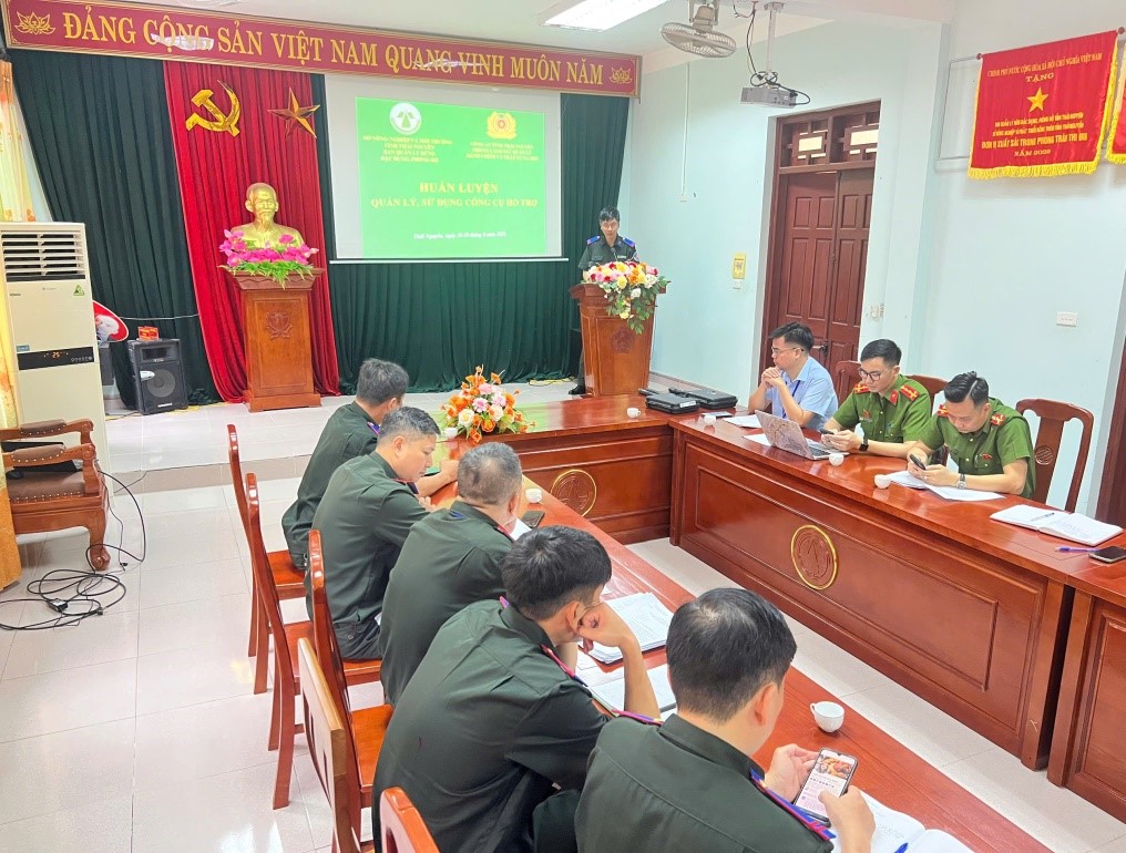 Lực lượng chuyên trách bảo vệ rừng thuộc Ban Quản lý tham gia huấn luyện kỹ thuật sử dụng an toàn các loại công cụ hỗ trợ như: Súng bắn đạn đa năng, gậy cao su, gậy điện, bình xịt hơi cay.... dưới sự hướng dẫn của cán bộ Phòng Cảnh sát Quản lý hành chính về trật tự xã hội - Công an tỉnh Thái Nguyên