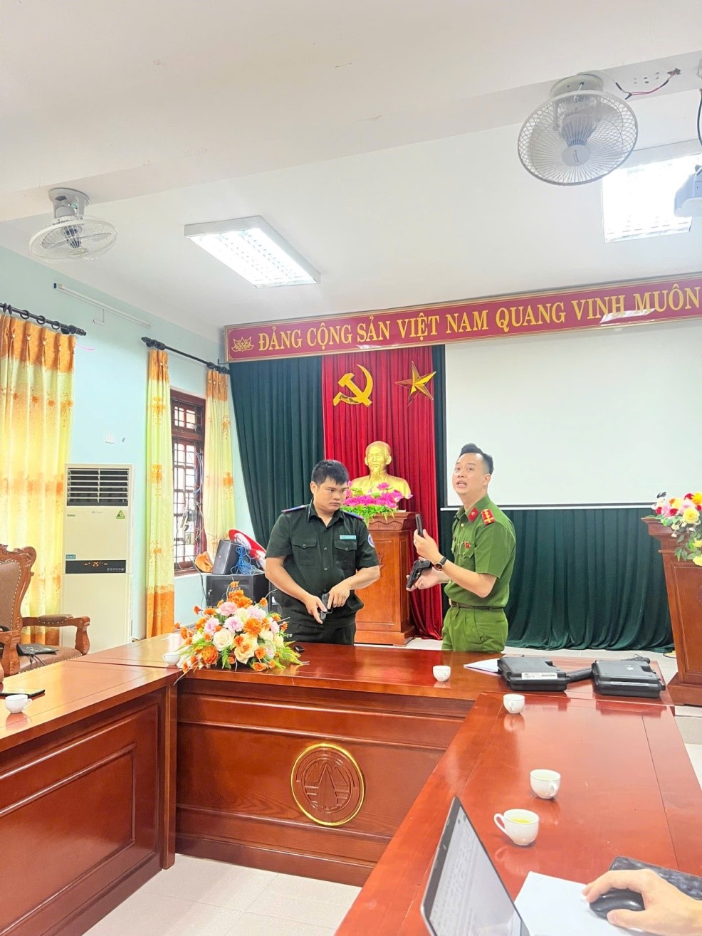 Các giảng viên của Phòng Cảnh sát Quản lý hành chính về trật tự xã hội - Công an tỉnh Thái Nguyên truyền đạt các quy định của pháp luật liên quan đến quản lý, trang bị và sử dụng công cụ hỗ trợ, quyền hạn, trách nhiệm của lực lượng chuyên trách bảo vệ rừng trong quá trình thực hiện nhiệm vụ