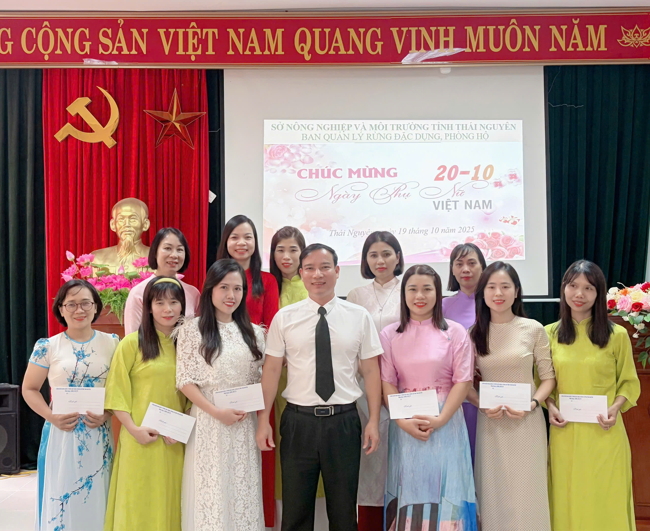 Hòa chung trong không khí vui tươi, phấn khởi của phụ nữ cả nước hướng tới kỷ niệm 95 năm Ngày thành lập Hội Liên hiệp Phụ nữ Việt Nam (20/10/1930 – 20/10/2025), sáng ngày 19/10, Ban Quản lý Rừng đặc dụng – Phòng hộ tỉnh Thái Nguyên đã tổ chức lễ kỷ niệm nhằm tri ân và tôn vinh những đóng góp của chị em phụ nữ trong đơn vị.