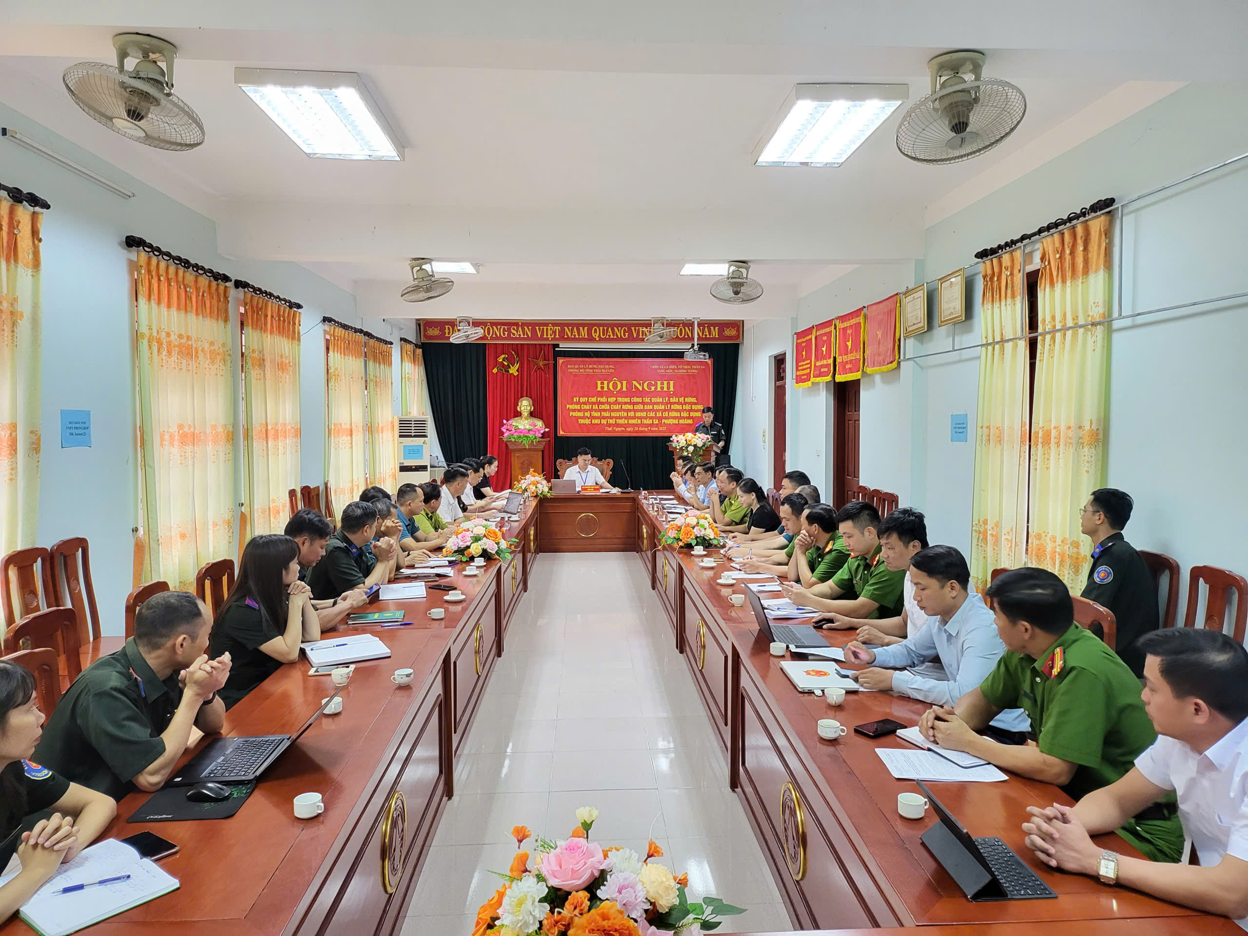 Chiều ngày 26/9/2025, tại Hội trường Ban Quản lý rừng đặc dụng, phòng hộ tỉnh Thái Nguyên (xóm Tân Sơn, xã La Hiên, tỉnh Thái Nguyên), Ban Quản lý rừng đặc dụng, phòng hộ tỉnh Thái Nguyên đã tổ chức Hội nghị ký Quy chế phối hợp trong công tác quản lý, bảo vệ rừng, phòng cháy và chữa cháy rừng với UBND các xã trong Khu dự trữ thiên nhiên Thần Sa – Phượng Hoàng: xã La Hiên, Võ Nhai, Thần Sa, Nghinh Tường, Sảng Mộc.